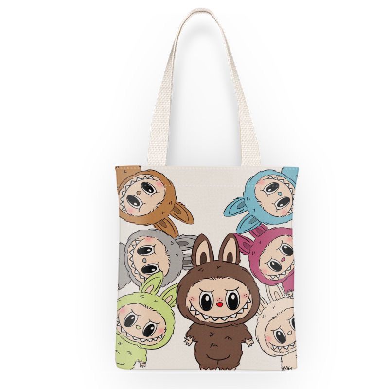 Show off your love for Labubu with this charming and spacious Labubu Bag! Featuring vibrant artwork of your favorite Labubu characters in their playful costumes. this tote bag is perfect for everyday use.